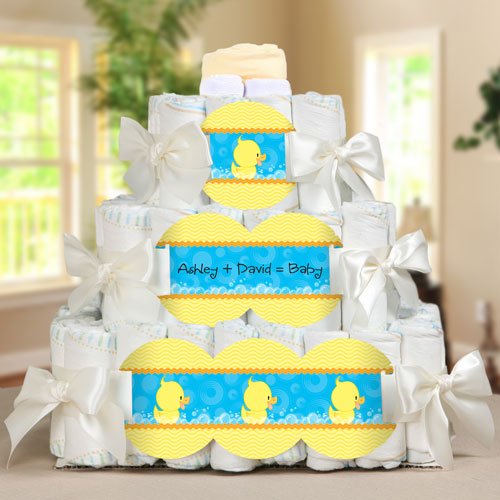 Ducky Duck - 3 Tier Personalized Square - Baby Shower Diaper Cake Feature Products